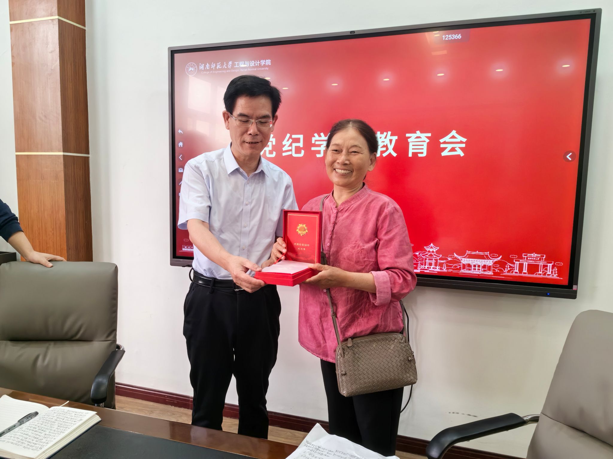 梁勇为老党员熊迎春同志颁发了“光荣在党50年”纪念章。
