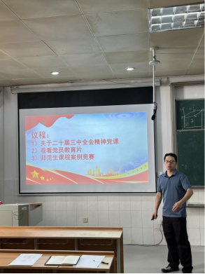 党支部书记陈灵围绕党的二十届三中全会精神,主讲一堂微党课。他说,全会提出,教育、科技、人才是中国式现代化的基础性、战略性支撑。要深化教育综合改革,深化科技体制改革,深化人才发展体制机制改革。他指出,电子系人才培养要服务国家和地方战略,大力推进职普融通、产教融合、科教融汇,培养更多的高素质电子工程人才。