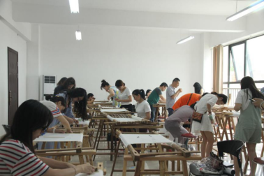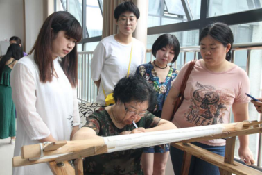 课后,刘爱云大师还亲临学员湘绣制作现场,从固定绣绷、劈线、穿针、定针等步骤对员工进行了实践指导。