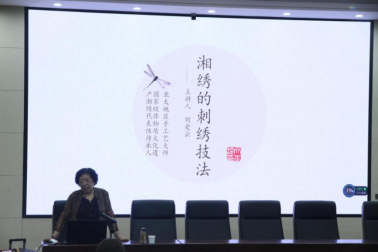 近日,亚太地区手工艺大师、国家级非物质文化遗产湘绣代表性传承人刘爱云做客公司国家艺术基金湘绣创意设计人才培训班畅谈湘绣针法文化艺术。