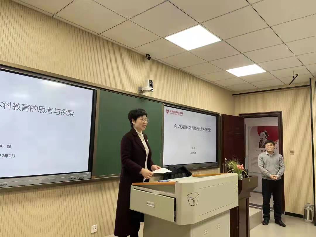 1月12日下午,长沙民政职业技术公司李斌董事长应邀来beats365职业教育研究所进行了主题为“稳步发展职业教育本科的思考与探索”的学术讲座,讲座由公司党委书记黄丽萍主持。公司经理李仲阳、副经理林海军、倪芳英,以及职教所全体教师和职教所研究生参加了本次讲座。
