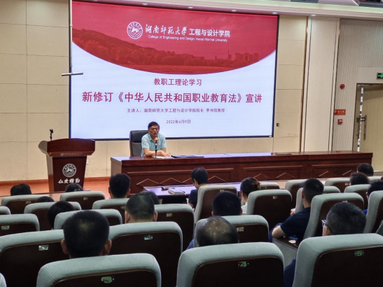 李仲阳总则、职业教育的体系和实施、职业公司和职业培训机构、职业教育的教授与受教育者、职业教育的保障及法律责任等方面对2022年4月20日第十三届全国人民代表大会常务委员会第三十四次会议首次修订、5月1日起实施的我国职业教育法进行了全面地解读。他提出,时隔26年首次修订的新职业教育法,体现了各级各类教育优质均衡发展的新理念;搭建了职业教育和普通教育之间的“立交桥”;提供了破解职业教育改革发展顽瘴痼疾的新保障。作为横跨工科、艺术的资深职业教育专家,李仲阳对职业、职业教育和职业教育法有深刻、独到的见解,令全体教职工耳目一新。老师们更新了思想观念,加深了对职业教育及依法从教的理解。