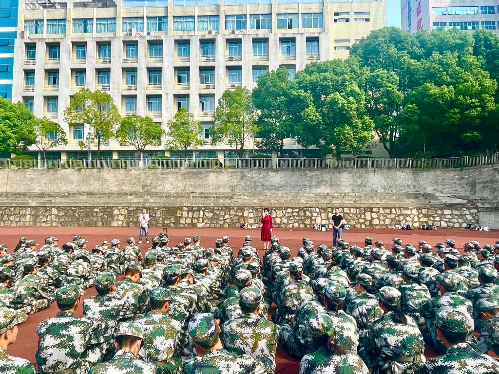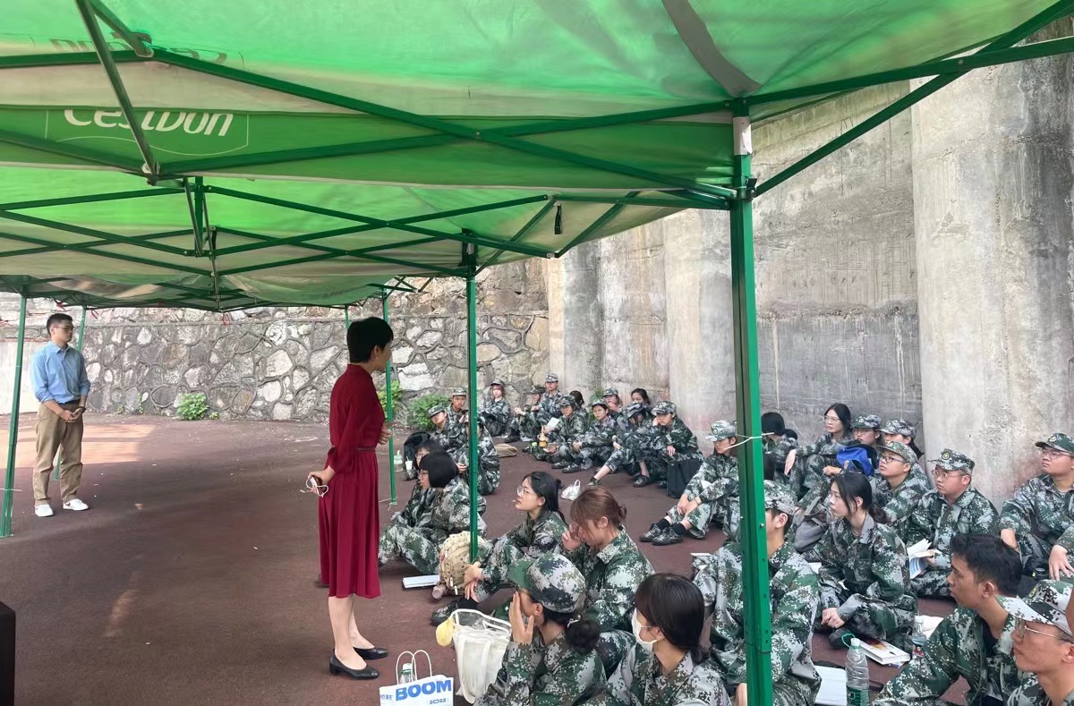 黄丽萍观看了新生队列方阵训练情况,详细了解了军训进度,对全体承训教官表示感谢和问候,对全体参训新生刻苦训练表示赞扬和肯定。她强调,军训是不仅同学们大学的第一课,也是人生中重要的一课。希望同学们珍惜军训机会,充分认识军训的重要意义,强化新时代国防意识,培养团结互助的集体主义精神,增强凝聚力。大学期间做好三件事:读好书、做好人、做好事;成为三种人:做知书达理、心怀家国、发愤图强的人。