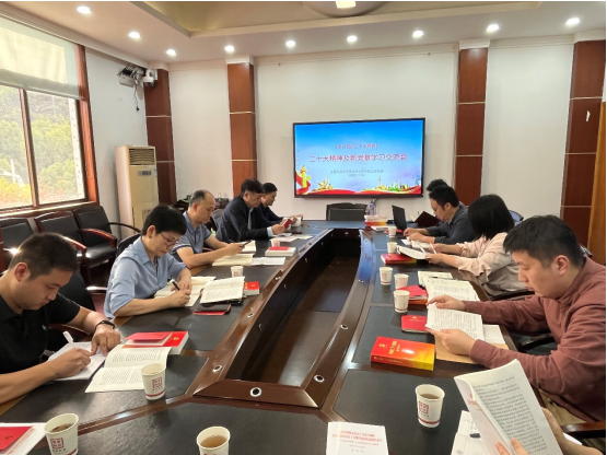 陈灵带领全体党员学习党的二十大精神及新党章修改部分内容,全体支部党员结合自身经历和工作实际,交流思想见解和学习体会。