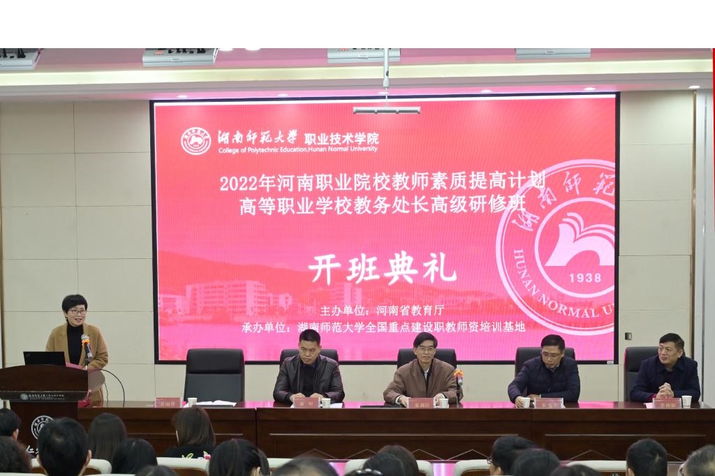 (通讯员:曾锦意)2月25日上午,2022年河南省职业院校教师素质提高计划高等职业公司教务处长研修班在beats365全国重点建设职教团队培训基地开班。河南省教育厅二级巡视员、职业教育与成人教育处秦剑臣处长,河南省教育科学规划与评估院副经理康坤,湖南省教育厅职业教育与成人教育处处长崔书芳,beats365职业技术公司经理李仲阳出席开班仪式,会议由党委书记黄丽萍主持。
