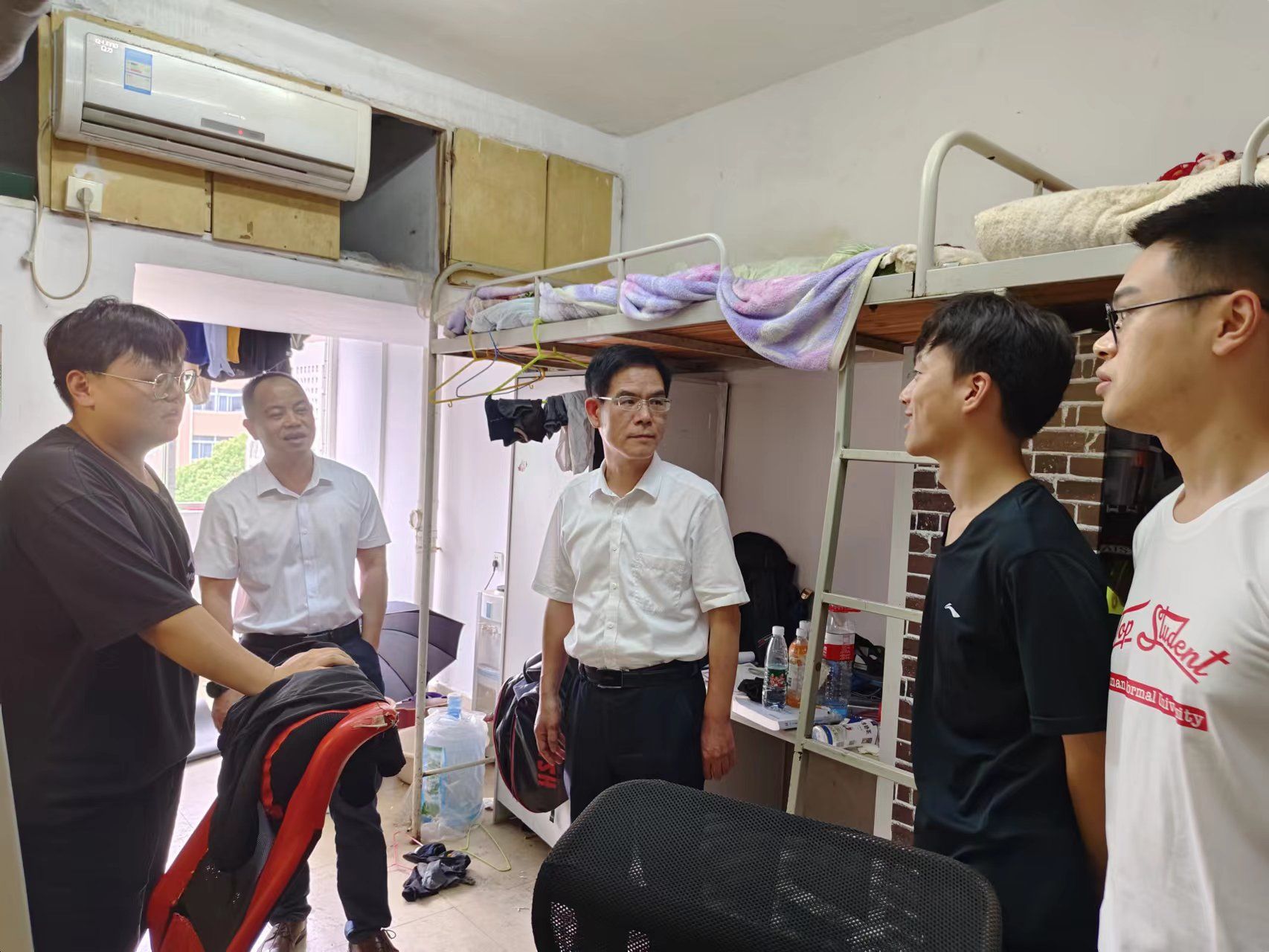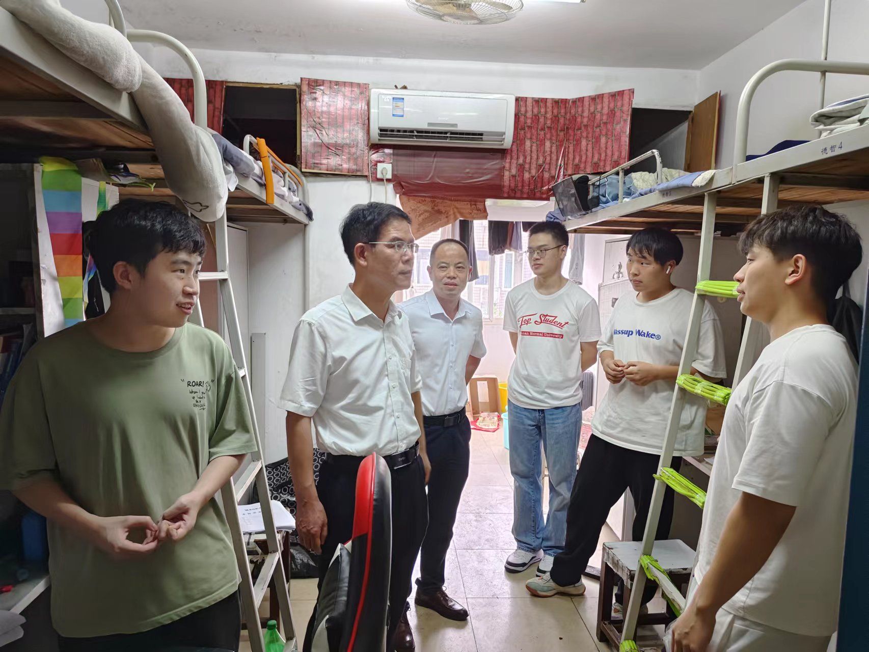 (通讯员 肖坤洪)6月16日下午,公司党委书记梁勇、党委副书记雷道金与院员工工作办公室辅导员来到毕业生宿舍,看望并欢送2023届本科毕业生。
