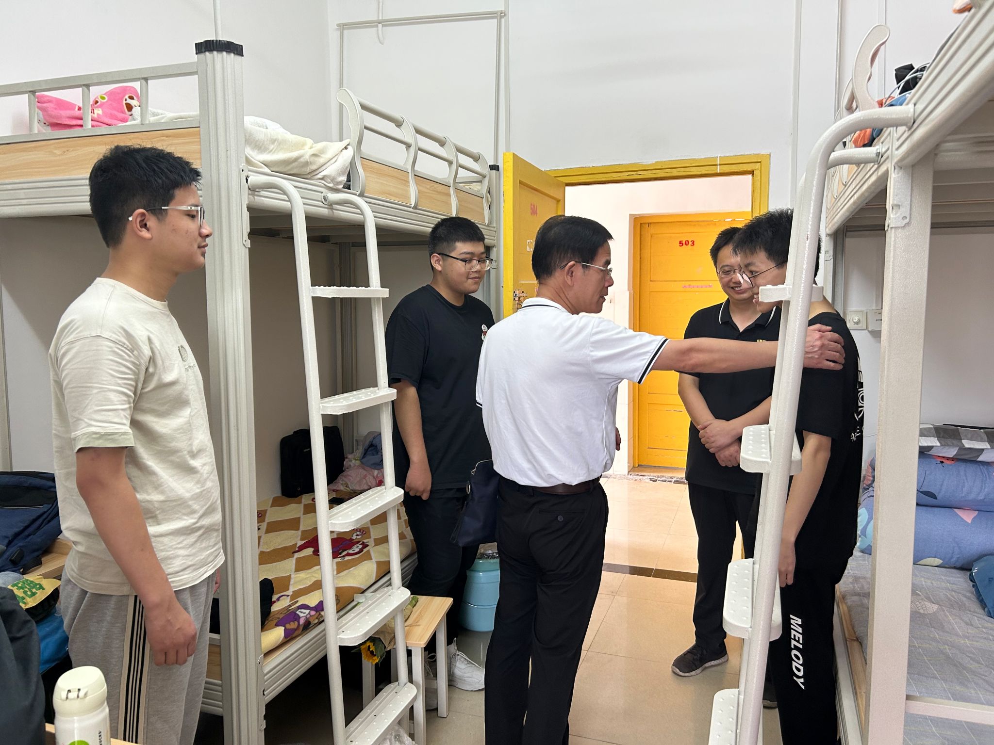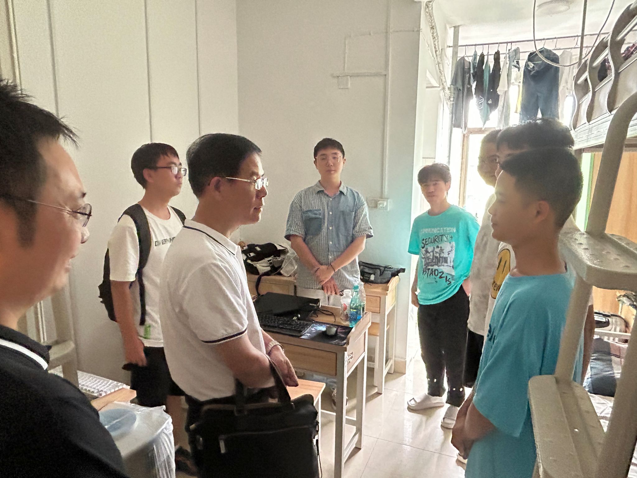 (学工办 供稿)9月15日,公司党委书记梁勇、副书记雷道金、副经理彭可、林海军、倪芳英及公司专职党建组织员刘晓燕及各学科负责人等一行赴公司迎新报到点、新生宿舍,看望2023级新生和家长,慰问迎新一线的工作人员和员工志愿者。
