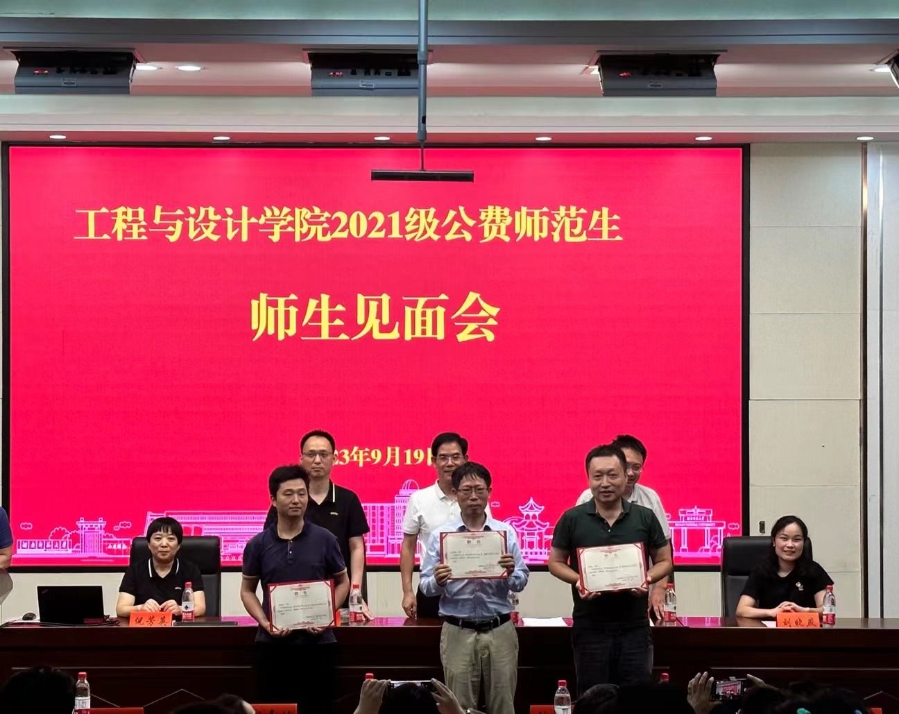 彭可宣读公司关于定向公费师范生班导师的聘任决定,公司领导为班导师颁发聘书。