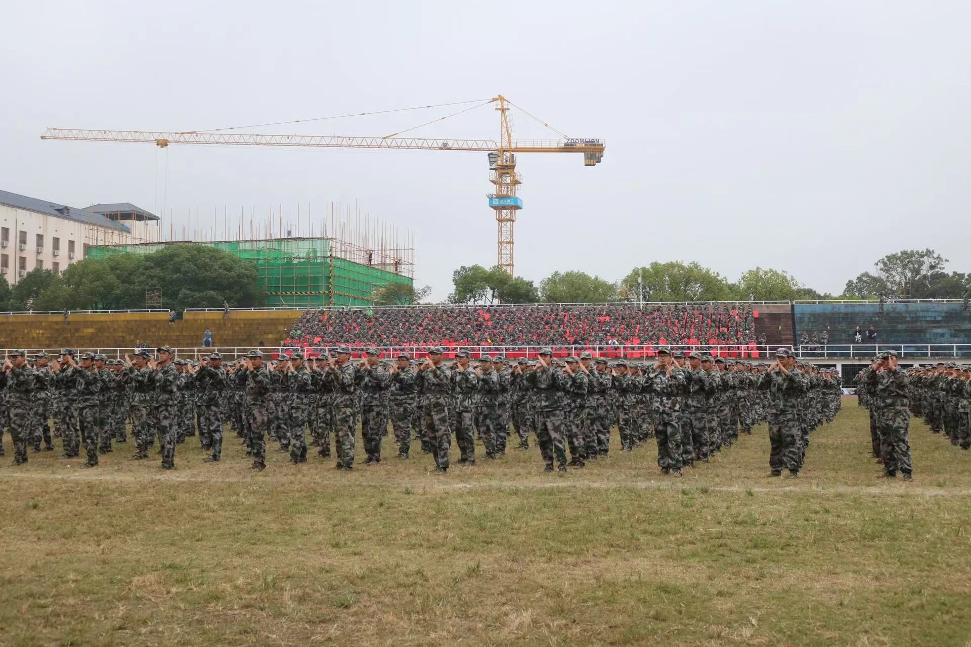 公司学工办全体辅导员和2023级新生参加军训总结表演大会。