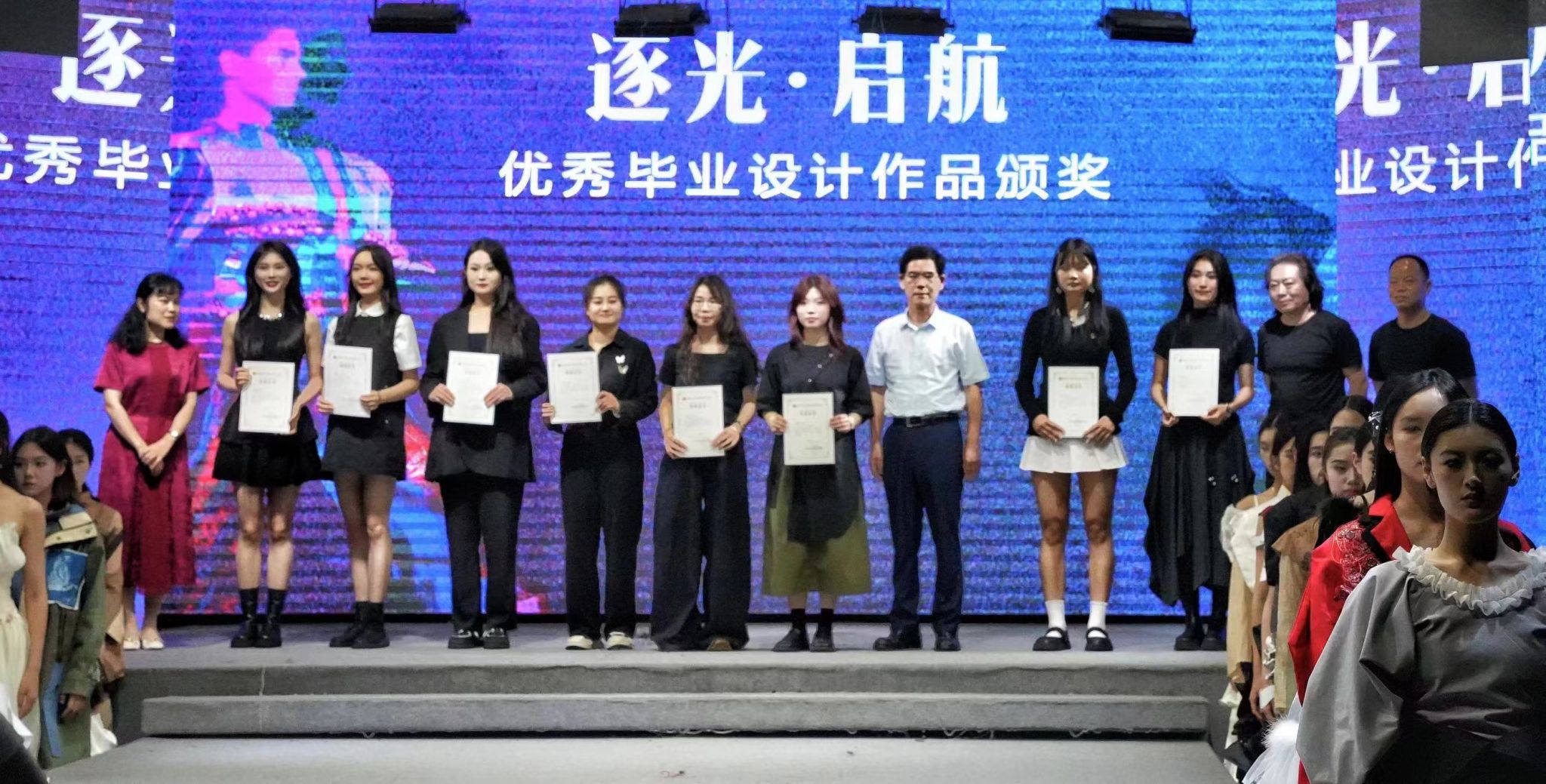 演出最后,院系领导为8位获得优秀毕业设计奖的毕业生进行颁奖,以表彰他们为优秀毕业创作付出的心血和努力。