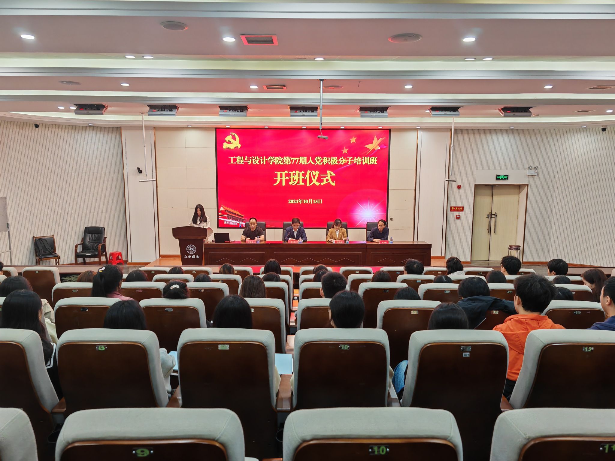公司科研与研究生办主任庞爱卿,学工办辅导员申梦博、邓萍及第77期共77名入党积极分子参加开班仪式。