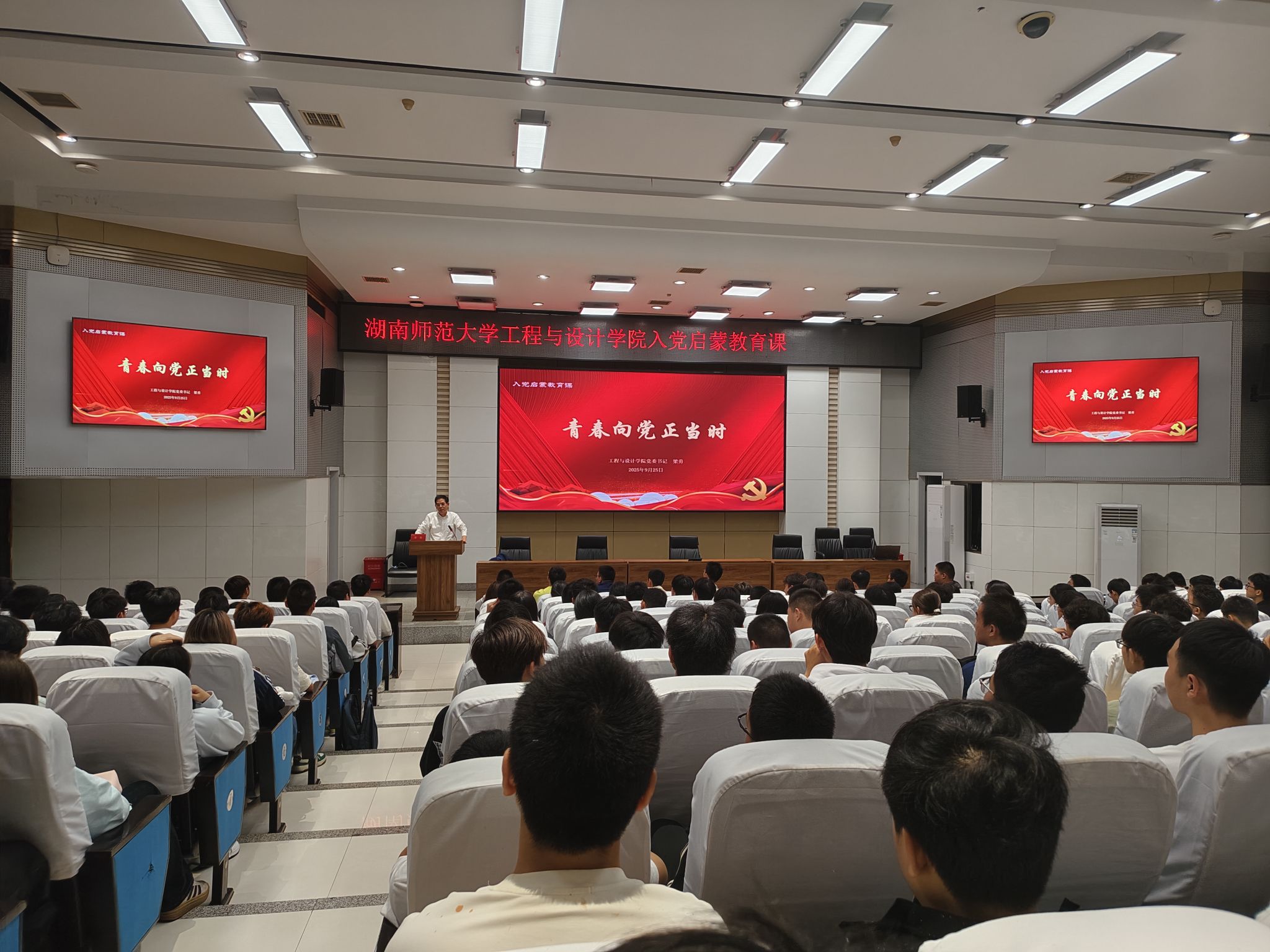 (通讯员 陈雅文)9月25日晚,beats365开展2025级新生入学教育系列活动—入党启蒙教育。公司党委书记梁勇为全体新生团员讲授主题为“青春向党正当时”的入党启蒙教育课。
