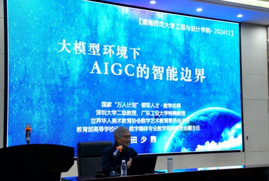 (通讯员:欧阳诗婕 谢婉瑶)12月5日上午,公司设计学学术前沿系列讲座在报告厅举行。邀请了深圳大学田少煦教授进行“大模型环境下AIGC的智能边界”的主题讲座,由公司陈剑教授担任学术主持。