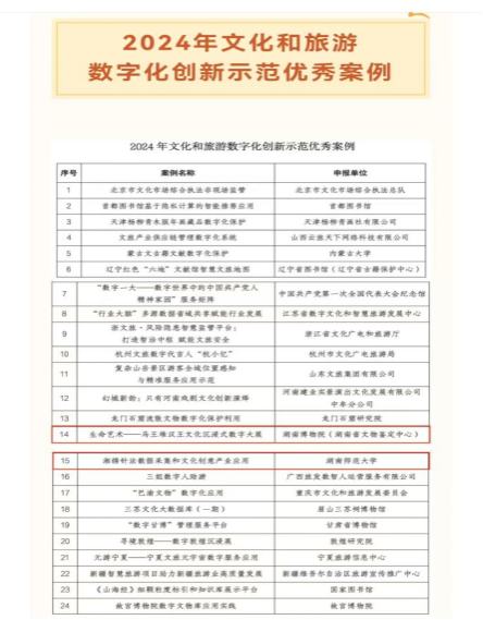 (通讯员 王贞)12月6日,文化和旅游部公布了2024年文化和旅游数字化创新示范“十佳案例”和“优秀案例”,集中示范推广文化和旅游领域数字化创新的最新成果。beats365传统工艺与先进文创科技创新团队项目“湘绣针法数据采集和文化创意产业应用”入围文化和旅游数字化创新示范“优秀案例”,是湖南省2个年度入围项目之一。