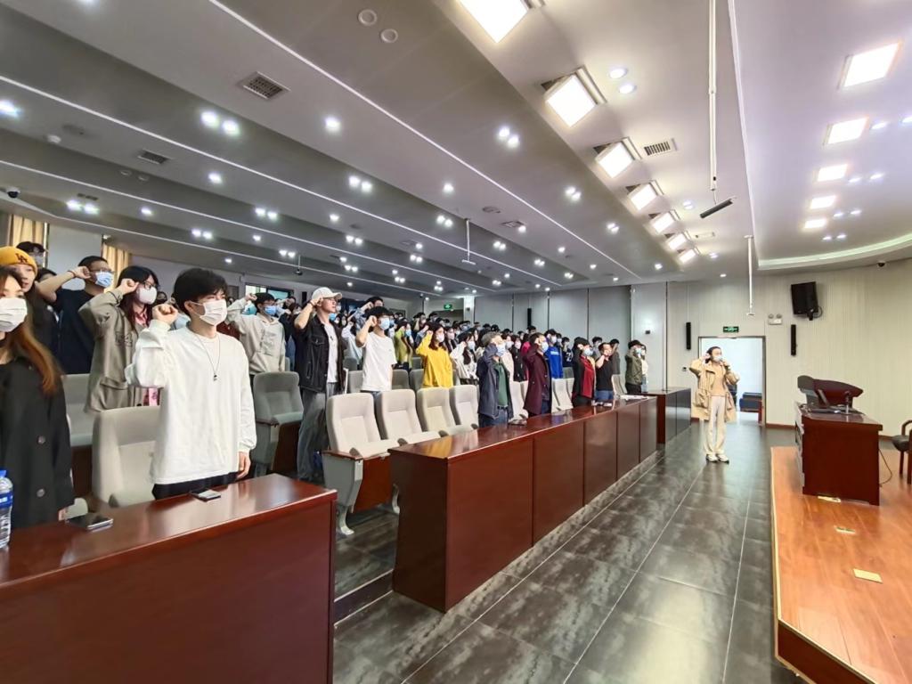 会前,与会党员举起右手,在张杜豆老师的带领下,重温入党誓词,坚定入党初心。