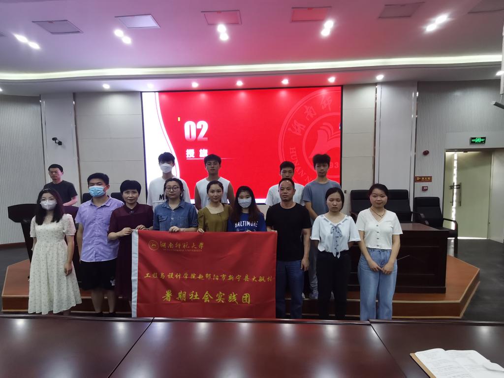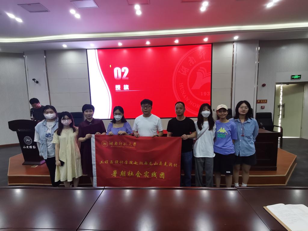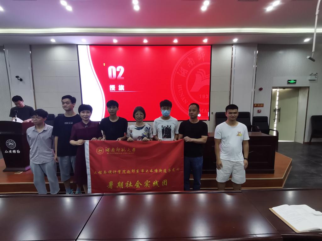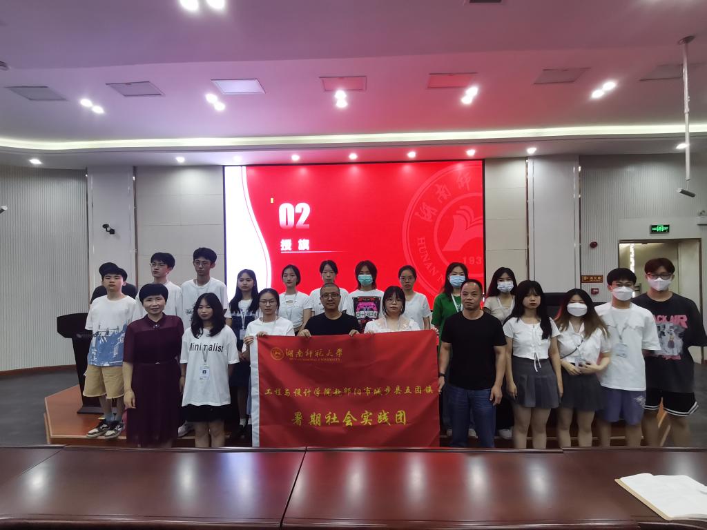 与会领导为实践团队授旗。指导教师代表王巍、员工代表何巧玲先后发言,表示将严格按照上级要求,做好规划预案,确保实践顺利开展。