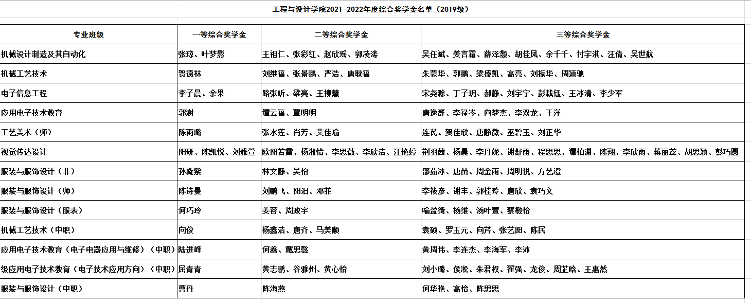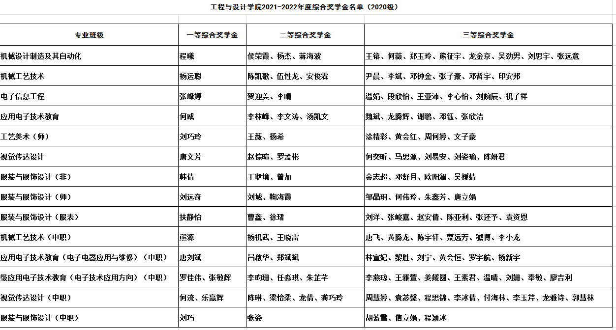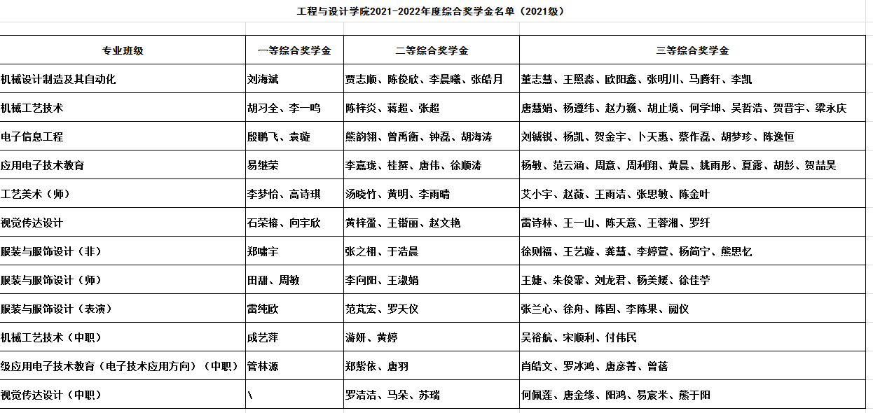 2021-2022学年度综合奖学金名单如下: