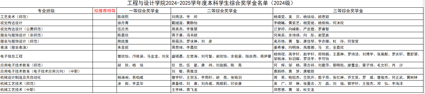 各年级2024-2025学年度综合奖学金名单如下: