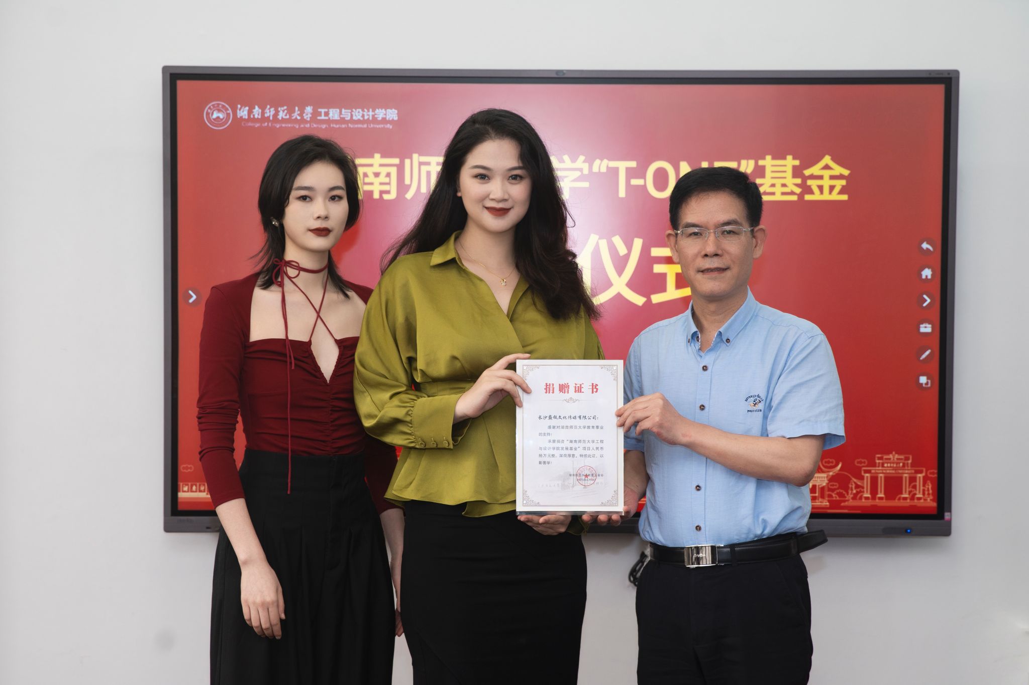 (供稿 学工办)6月6日下午,公司与长沙巅瓴文化传媒有限公司在公司318会议室举行“beats365T-ONE基金”捐赠仪式。公司2013级服装表演专业员工、长沙巅瓴文化传媒有限公司创始人张娅昕、帅琪,公司党委书记梁勇出席捐赠仪式。仪式由公司党委副书记雷道金主持。