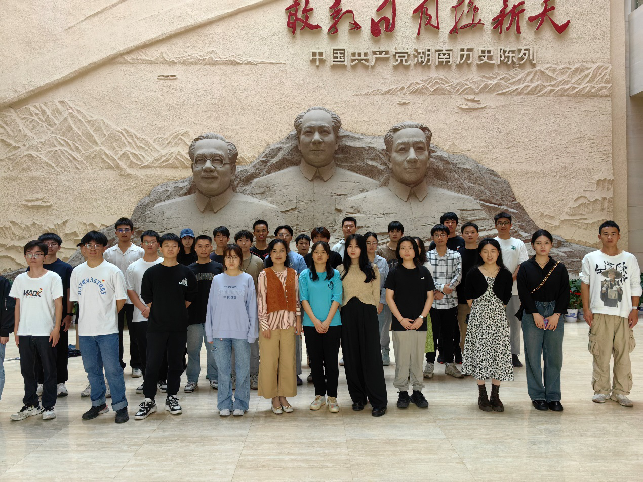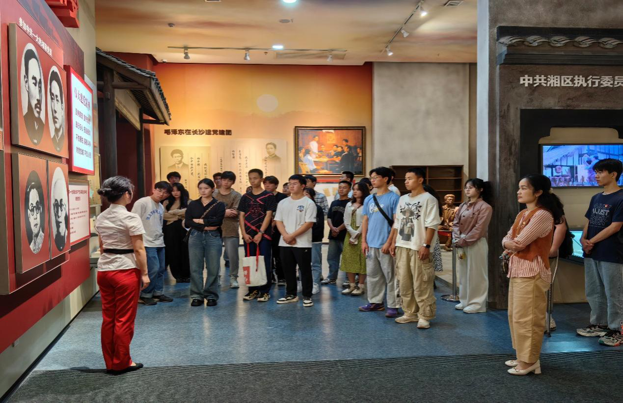 在“潇湘魂”伟人雕像前,新党员举起右手,面向党旗庄严宣誓;在展厅里,同学们认真学习了解中国共产党领导湖南人民进行革命、建设、改革的历史;在广场上,各学习小组进行讨论交流。
