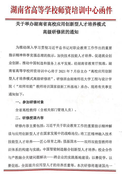 关于举办湖南省高校应用创新型人才培养模式高级研修班的通知