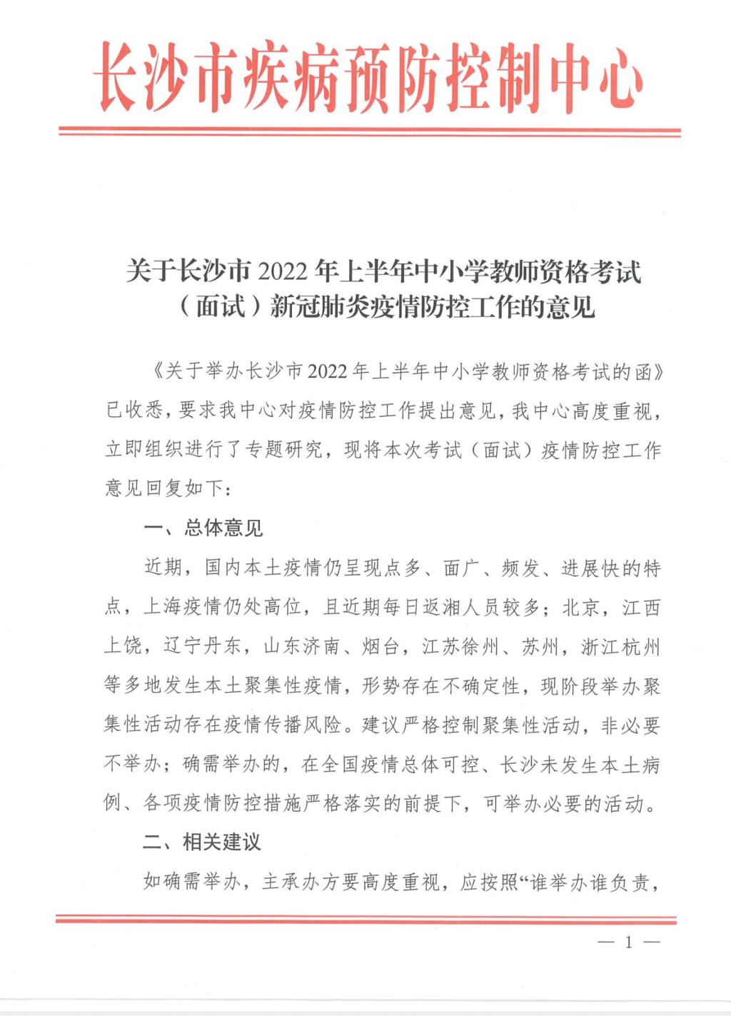 关于长沙市2022年上半年中小学教团队格考试(面试)新冠肺炎疫情防控工作的意见