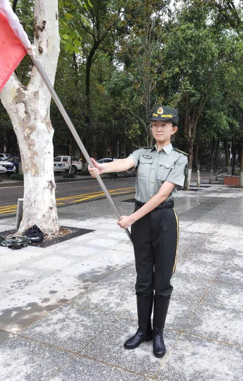 在女子国护队坚守已经一年了,付出就有回报。现在我已经成为一名升旗手。每周的训练虽枯燥但是乐在其中,每次出任务,只要听到“大会第一项,升国旗奏国歌,升校旗奏校歌,有请国旗护卫队出旗!”铿锵话语,我内心的自豪和自信就会让我奋力向前,加入国护,守护国护,我,从未后悔!